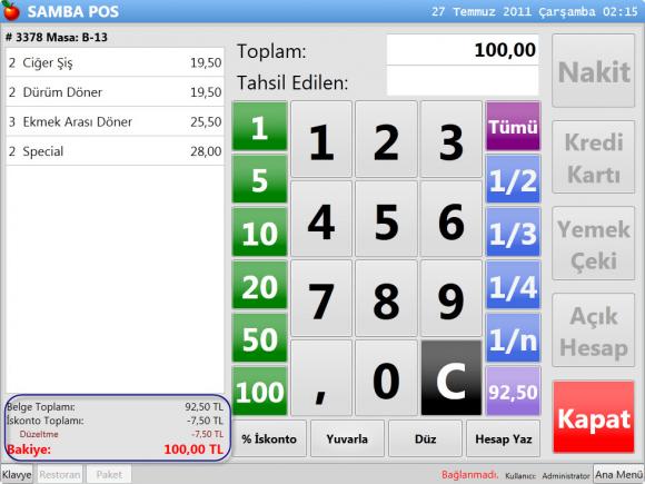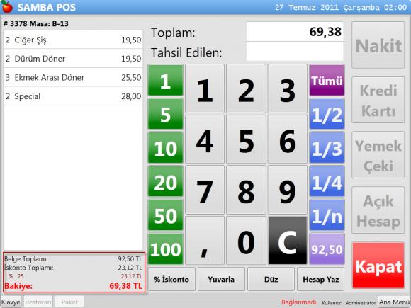 SambaPOS son derece gelişmiş ve çeşitli şekillerde iskonto yapabilmenizi sağlar. Bunlar: