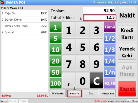 Örneğimizde 92,50 Tl olan hesabı 100 TL olarak nasıl tahsil edebileceğimizi göreceğiz.